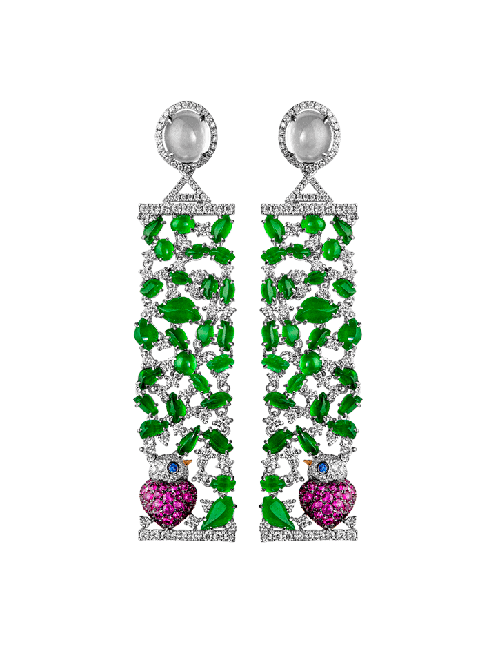Celebrating Generations of Love, E-Shop, Earrings, Jadeite, JewelleryThe entreating pair of earrings is inspired by “thousands dragon’s canal” in the Forbidden City of China that has protected the imperial palace from calamity for more than six hundred years. The designer wished to bestow upon the owner the same endearing resilience and relentless protection. Ice Jadeite Diamond Earrings in 750 white gold.