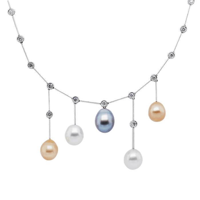 Golden Dusk Trio Pearl Diamond Necklace