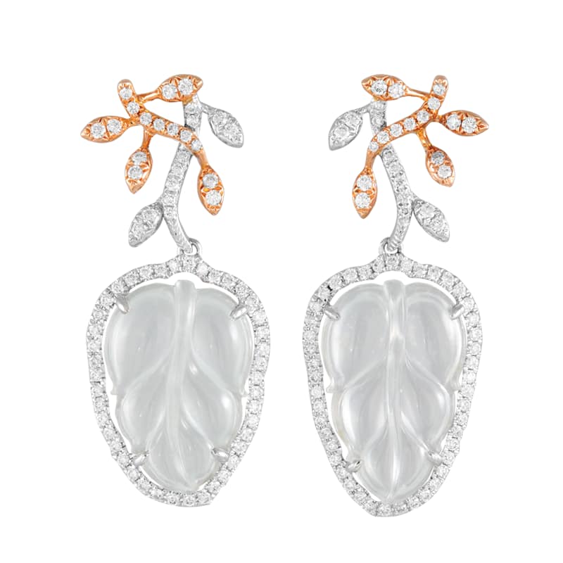 Jadeite Diamond Earrings in 750 White & Rose Gold.