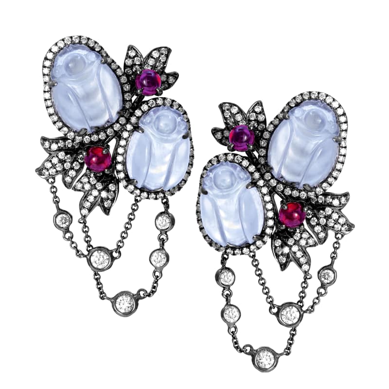 Celebrating Generations of Love, E-Shop, Earrings, JadeiteJadeite Diamond chandelier Earrings in 750 White Gold.