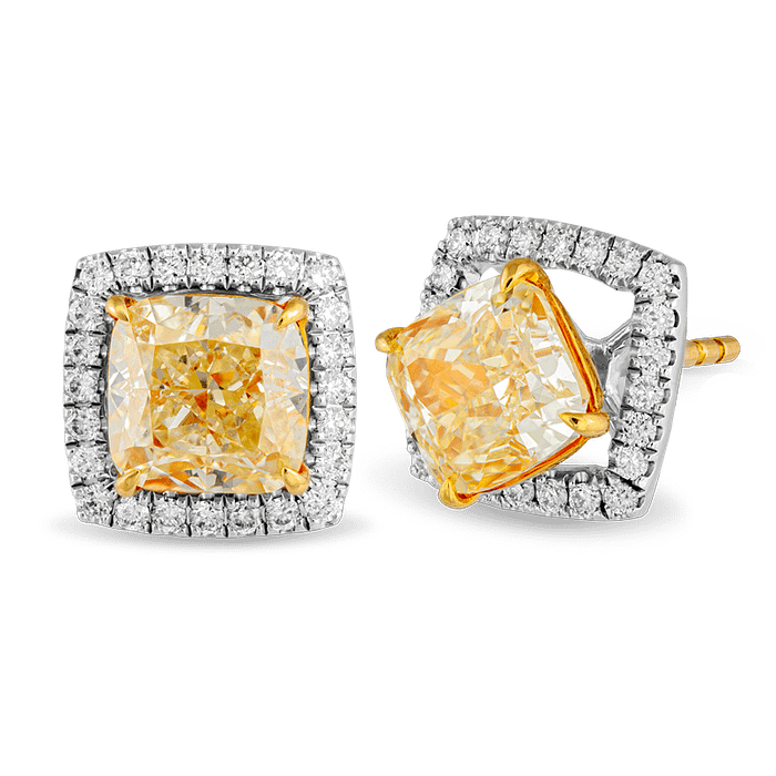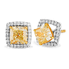 Fancy Yellow Diamond Earrings in 750 White gold that can be style in 2 different looks with or without the diamond bracket.