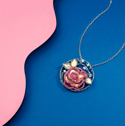 材质:白/黄金750 蓝宝石 11 颗 0.10卡 红宝石 12 颗 0.09卡 紫水晶 9 颗 0.06卡 钻石圆形 64 粒 0.92卡 钻石锥形 8 颗 0.26卡