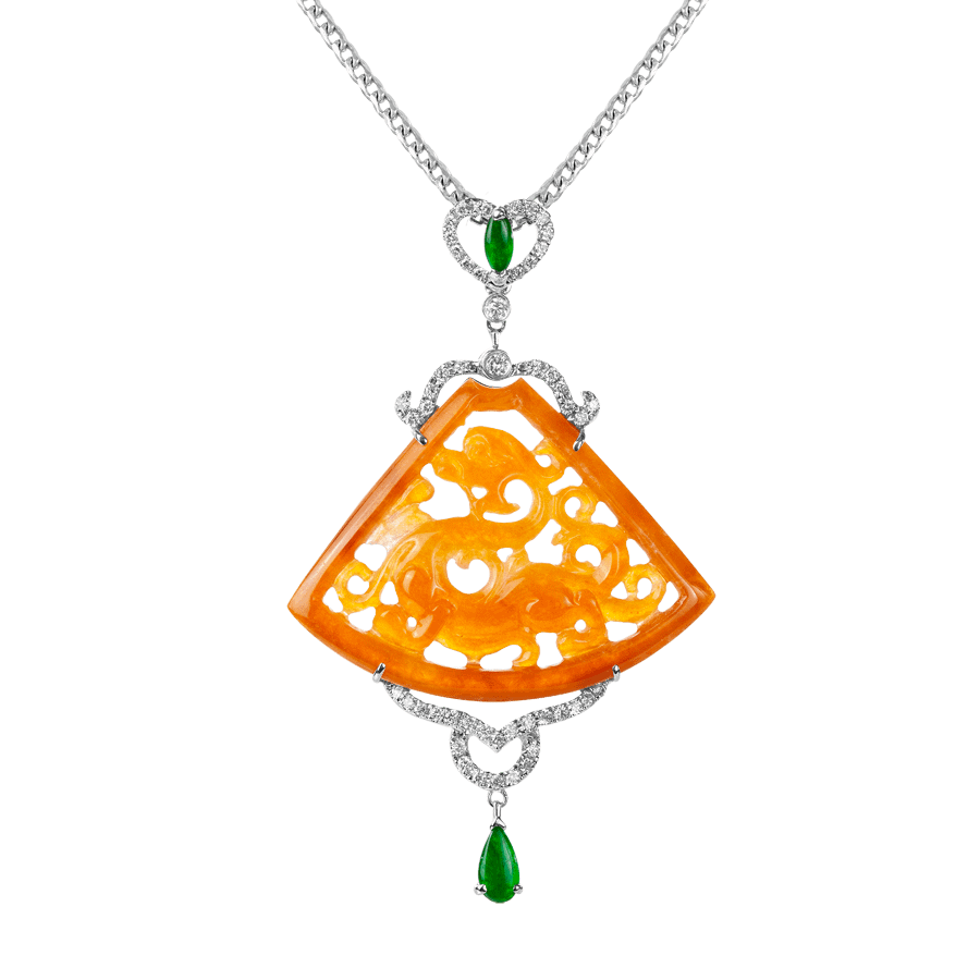 材质: 白金 750 翡翠 3 颗 钻石 50 粒 0.28卡