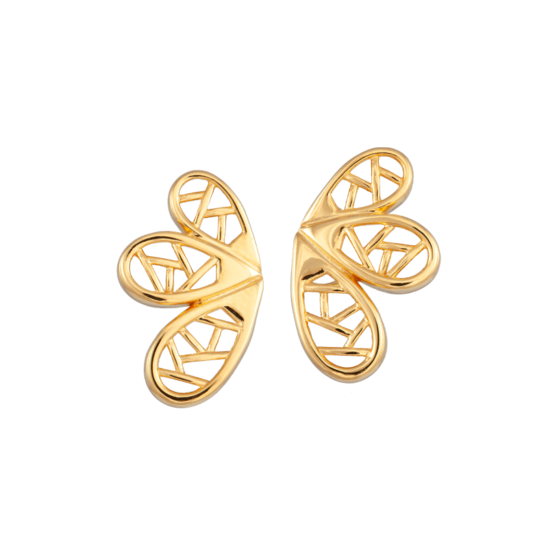 Below $1000, Majulah Collection, 四点金, 在线商店, 珠宝, 黄金, 设计师系列, 婚嫁系列, 耳环云肩与窗花的结合体,寓意为新人进入饱蘸情爱的人生新起点,结合冰裂紋樣式冰花裂紋象徵堅冰出現裂紋開始消溶,象征美好的、如意的願望立即到來。