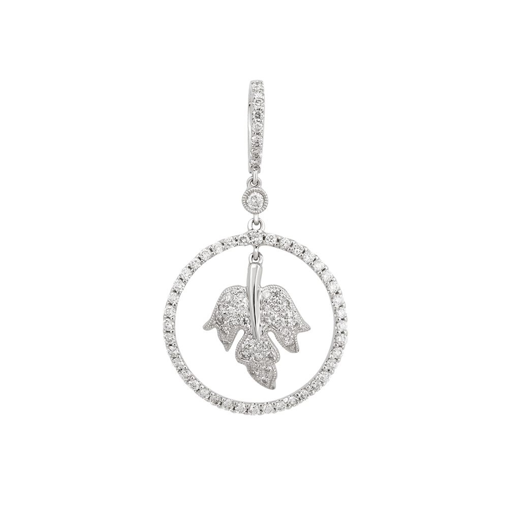 「Desiderio」意为“渴望”,这款钻石吊坠以750白金打造,线条利落流畅,融合精致圆钻错落铺陈,光影交织,层次分明。主钻凝聚焦点,其余钻石如星辰环绕,寓意内心的真挚渴望与不变承诺,为现代女性诠释坚定而优雅的心意表达。