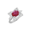 以盛放的玫瑰为灵感,未加热红宝石闪耀着自然的热情光彩,周围的梨形与风筝形钻石如花瓣绽放,象征永恒的爱与优雅之美。