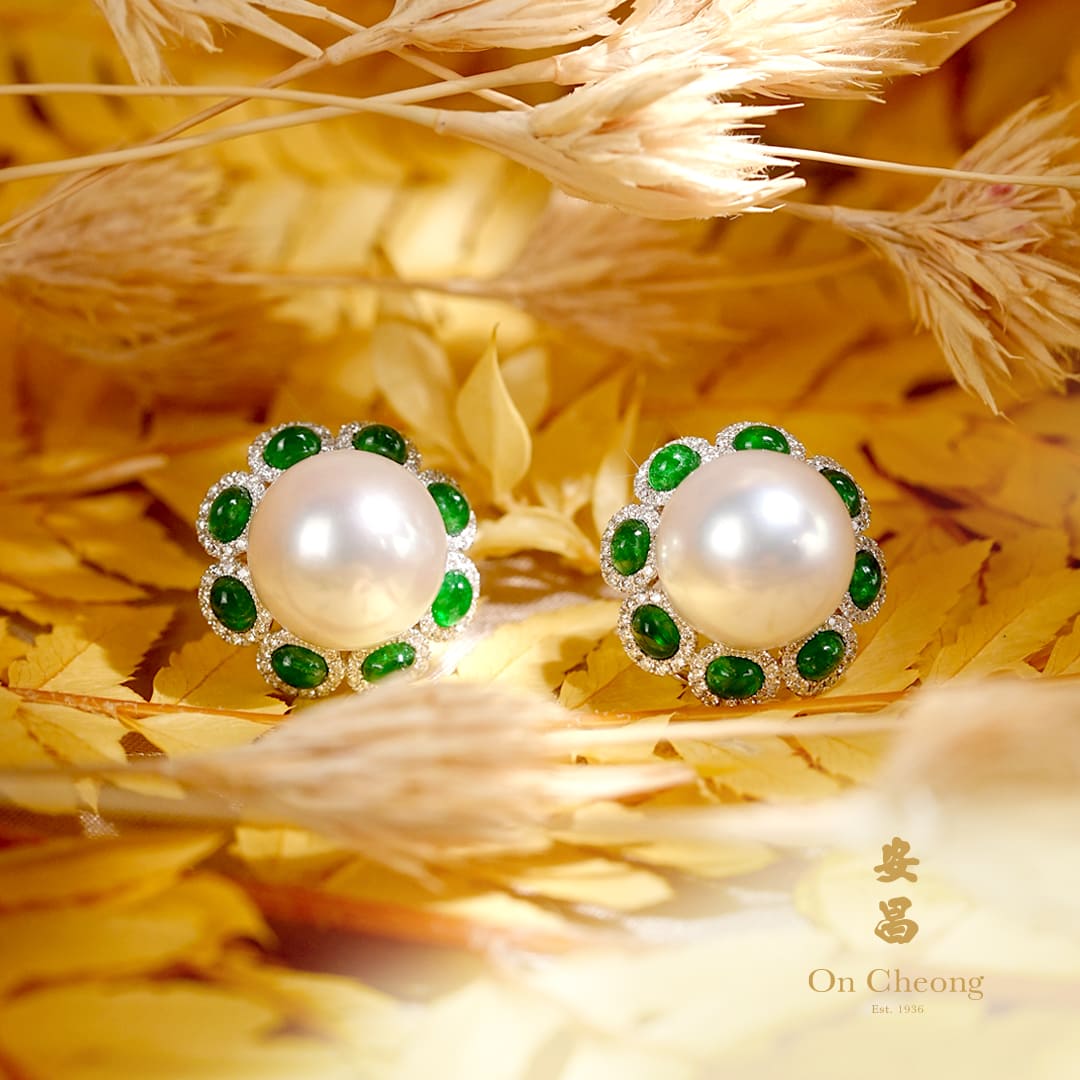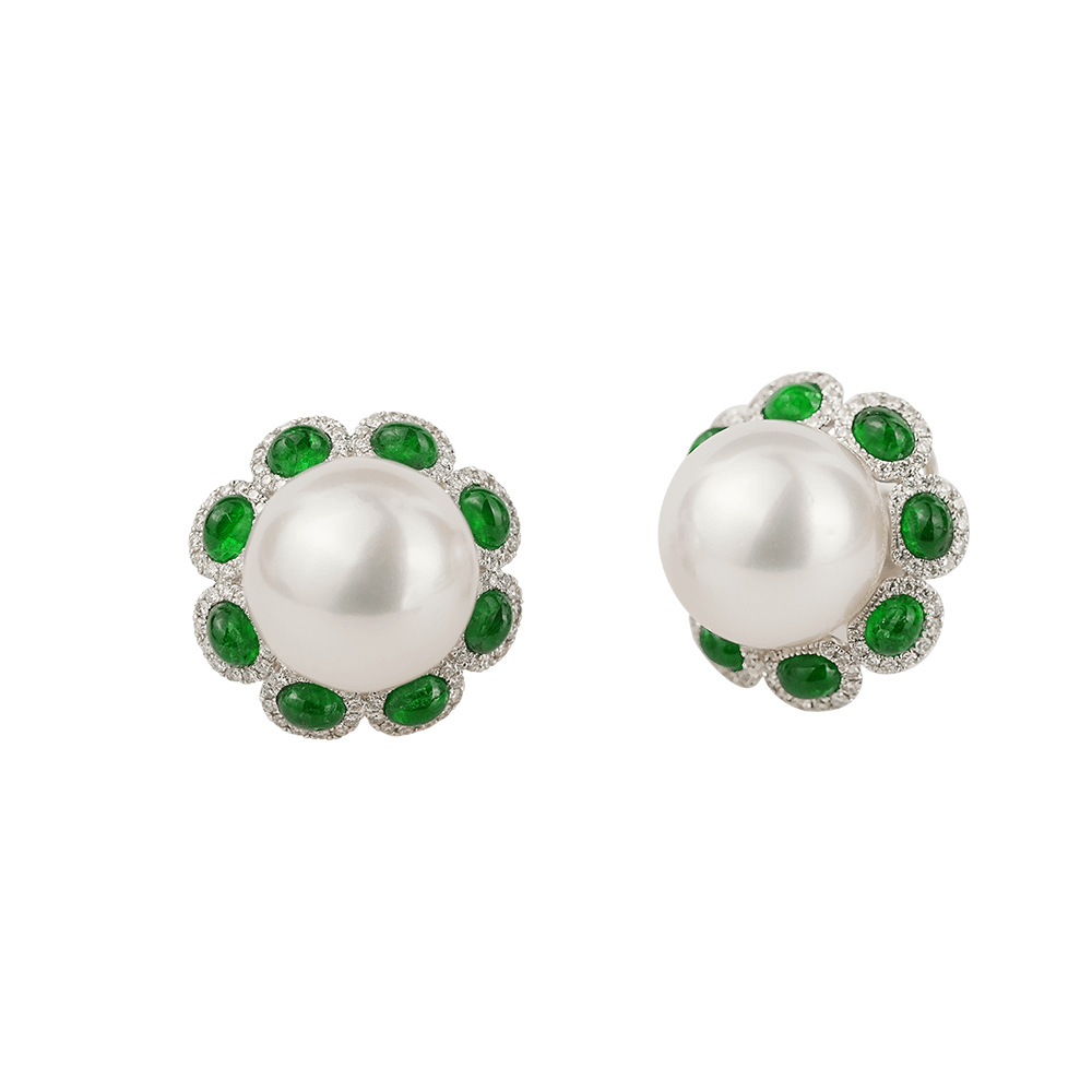 南洋珍珠为主角,缀以鲜艳的糖果型祖母绿与璀璨钻石环绕,尽显雍容华贵的恒久优雅。