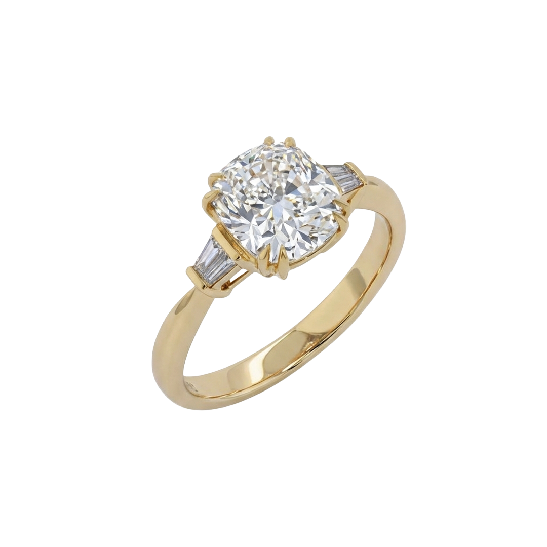 in 18K/750, Yellow, Cathedral Band, Classic, Sidestone, Solitaire