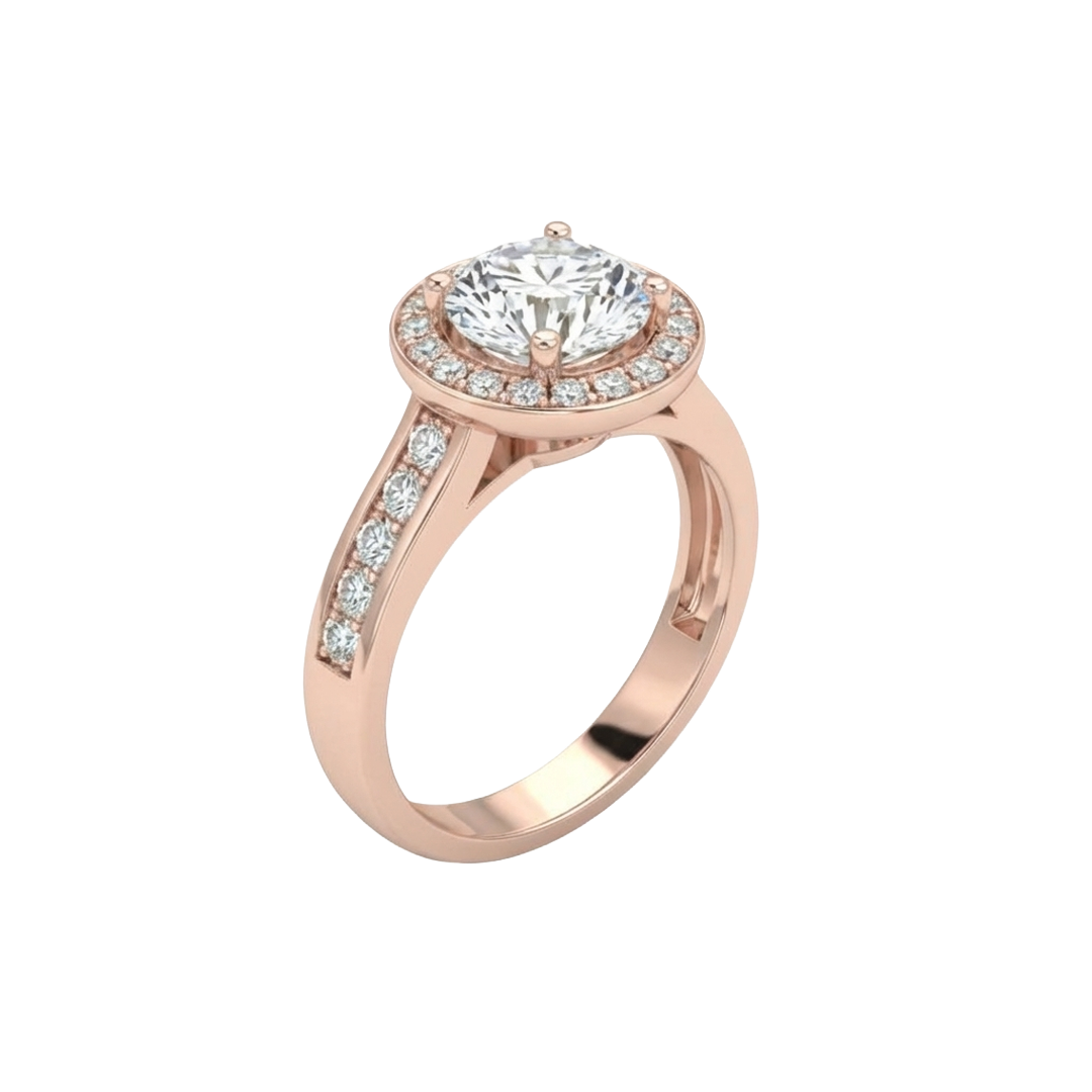 in 18K/750, Rose, Classic, Halo, Sidestone