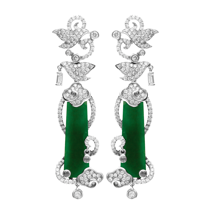 Jadeite Diamond Earrings in 750 White Gold.