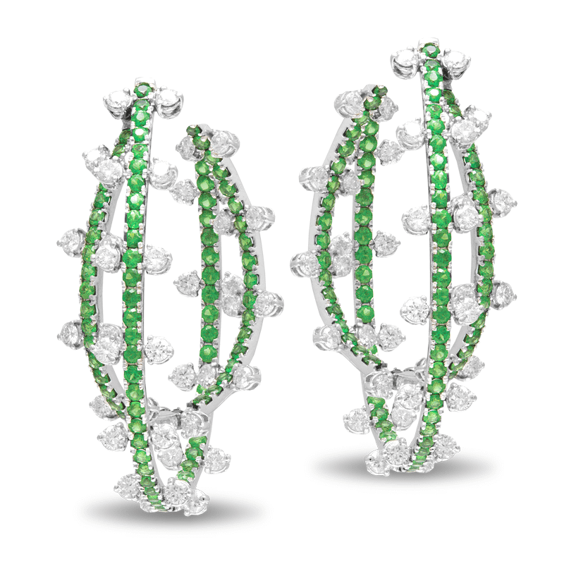 Tsavorite Diamond Earrings in 750 White Gold.