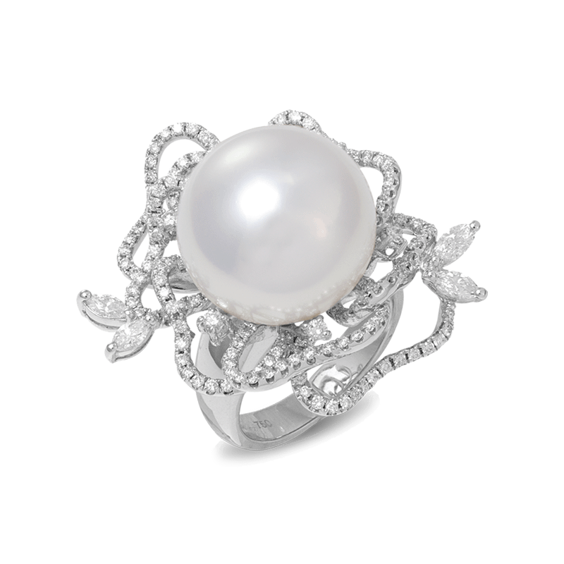 White South Sea Pearl Diamond Ring set in 750 White Gold.