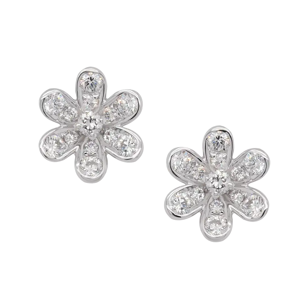 Floral-inspired diamond earrings featuring two centre stones and 24 accent diamonds, crafted in 18K gold. Customisable in white, yellow, or rose gold.