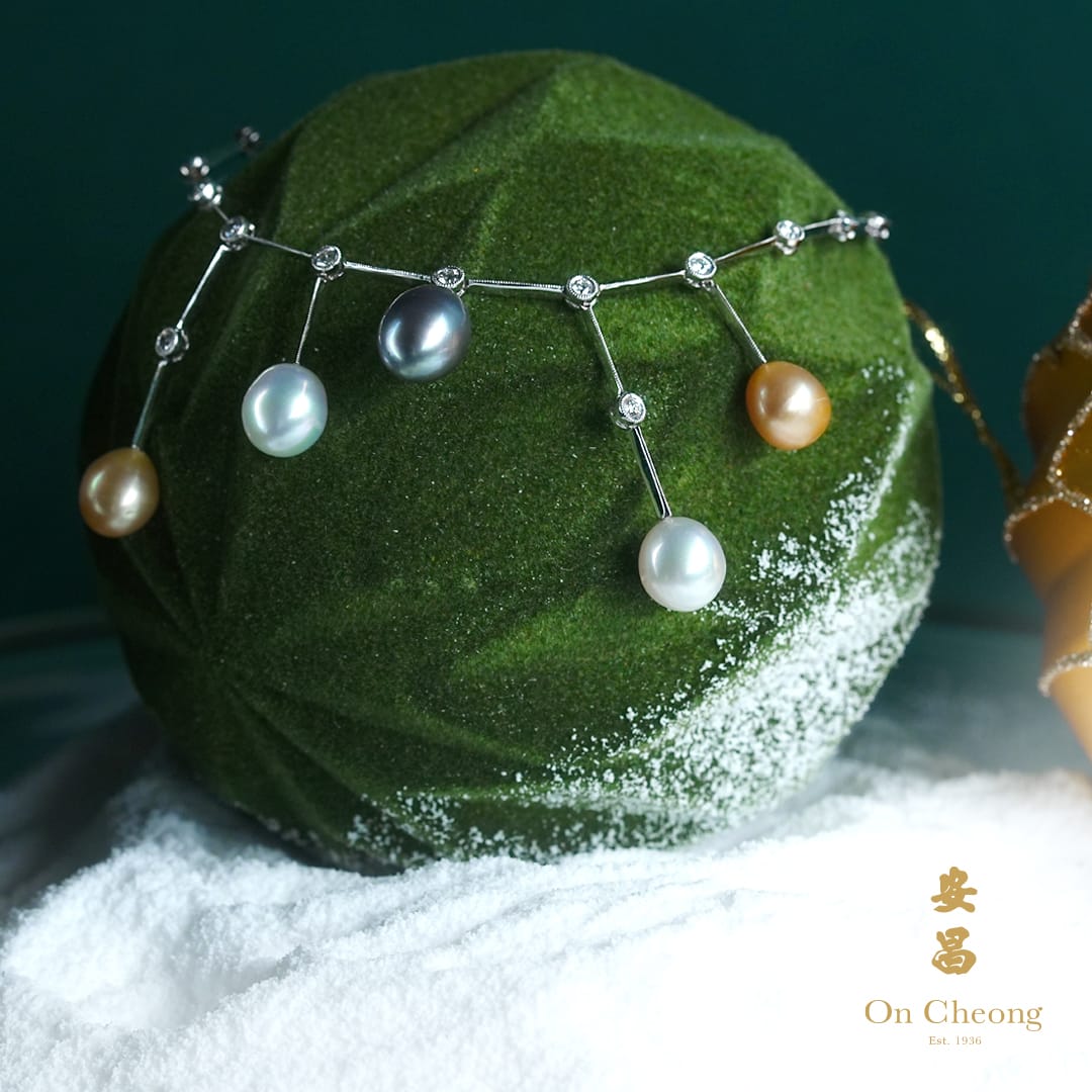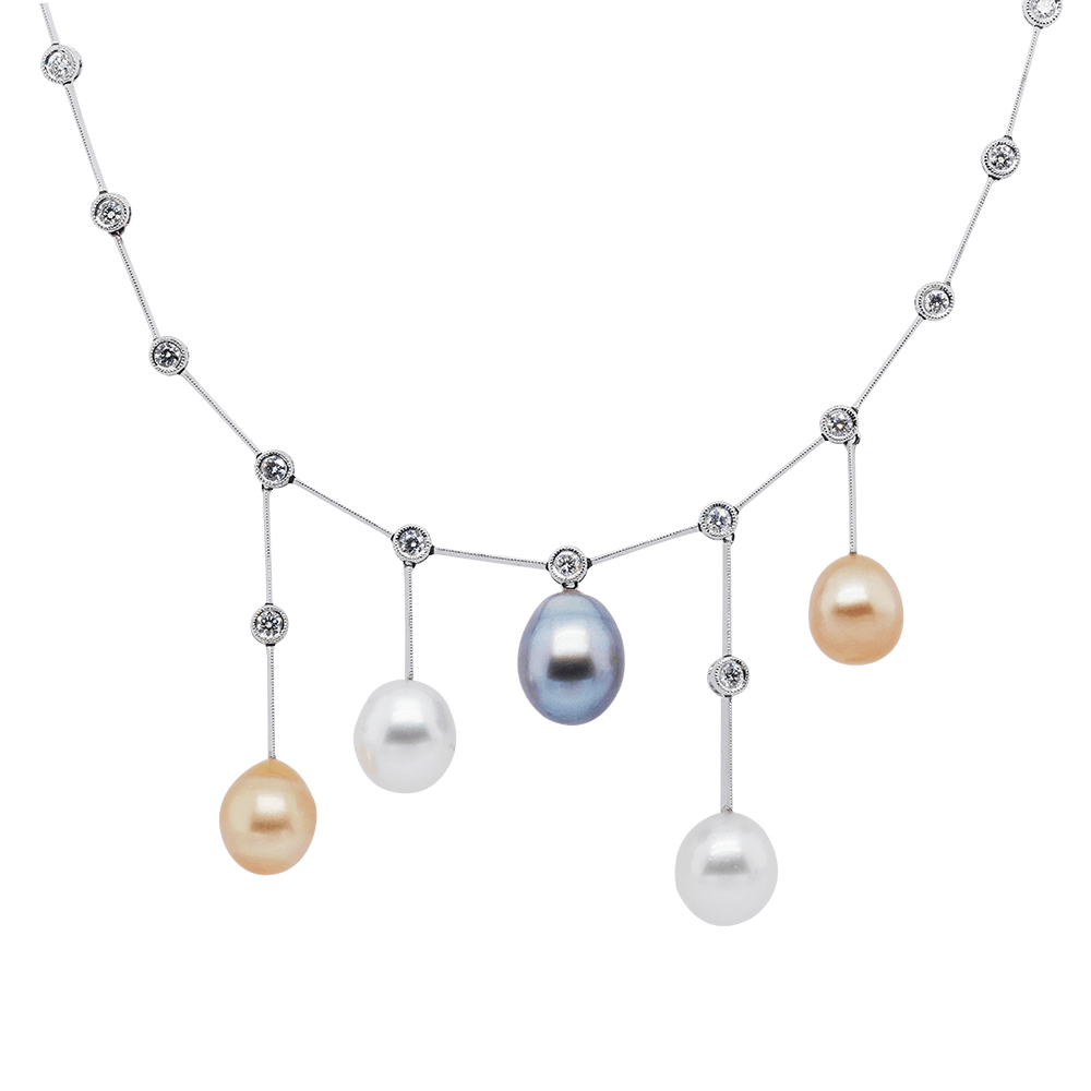 Golden Dusk Trio Pearl Diamond Necklace