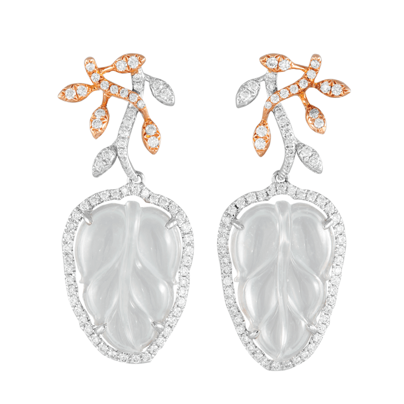 Jadeite leaf, a representation of a noble identity in ancient China, also represent progression and success in one’s career. Adorn oneself with Golden Laurel Ice Jadeite Diamond Earrings with excellent luster and translucency, the symbol of victory, success and achievement.