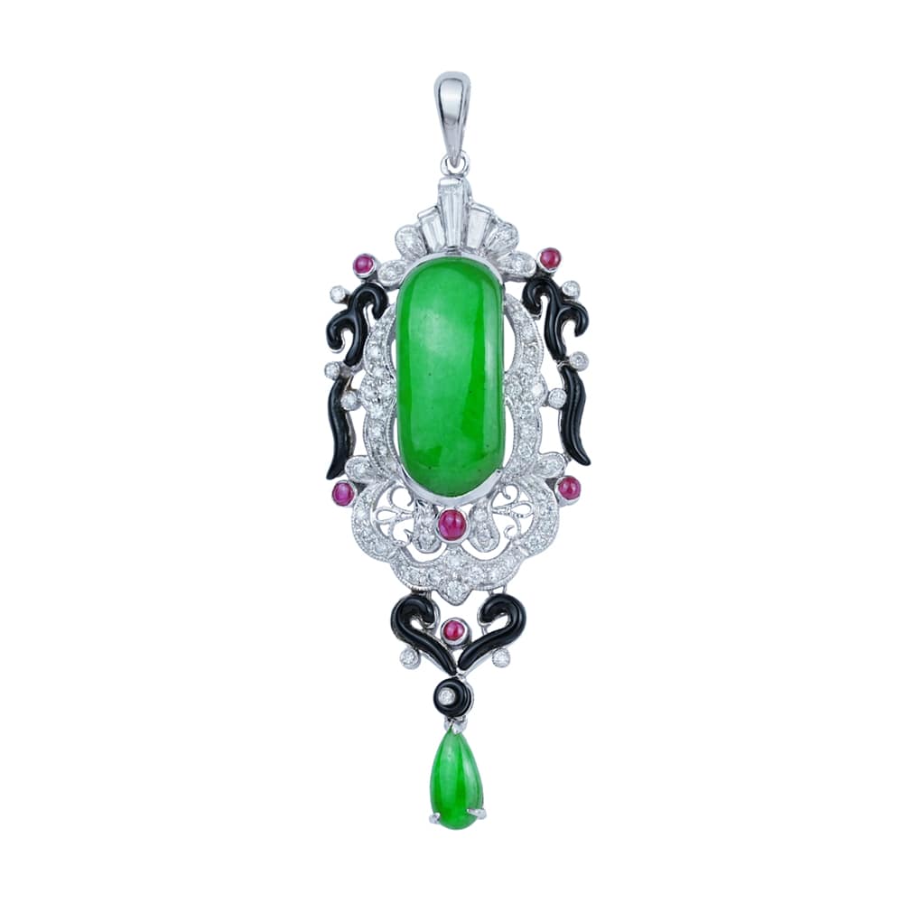 “Grandiose” Jadeite Onyx Diamond Pendant