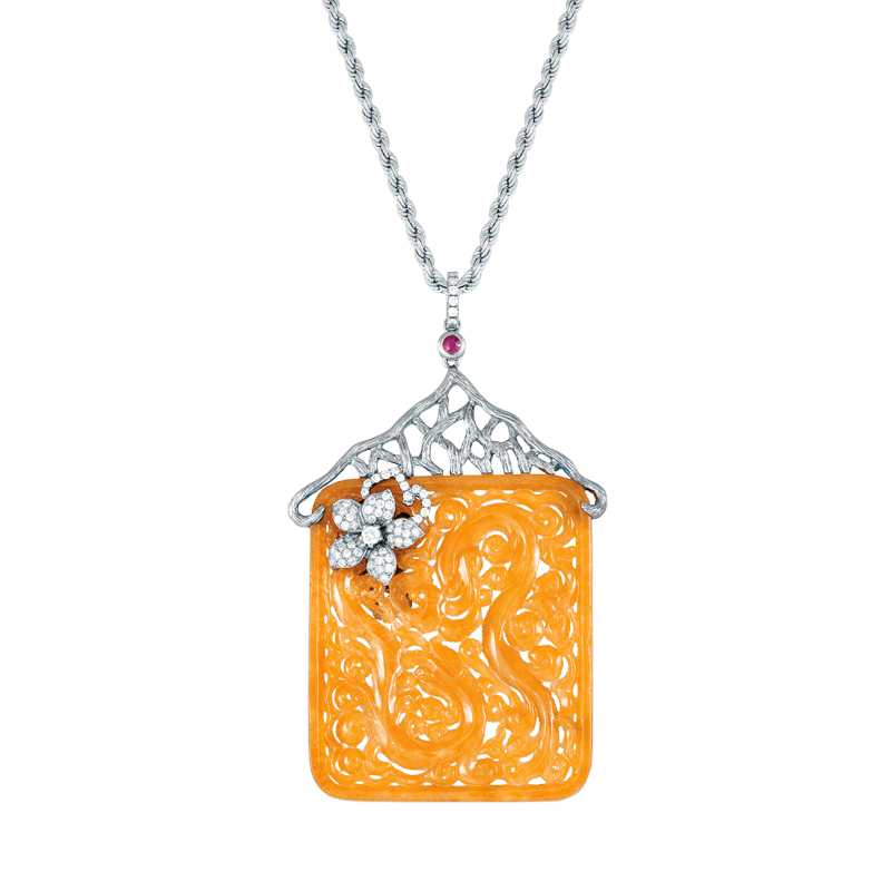 Vibrantly carved honey jade pendant masterpiece brings hopes and a brighter tomorrow to people around you. A great collection in your jewellery wardrobe as it signifies an abundance of fortune be upon you.