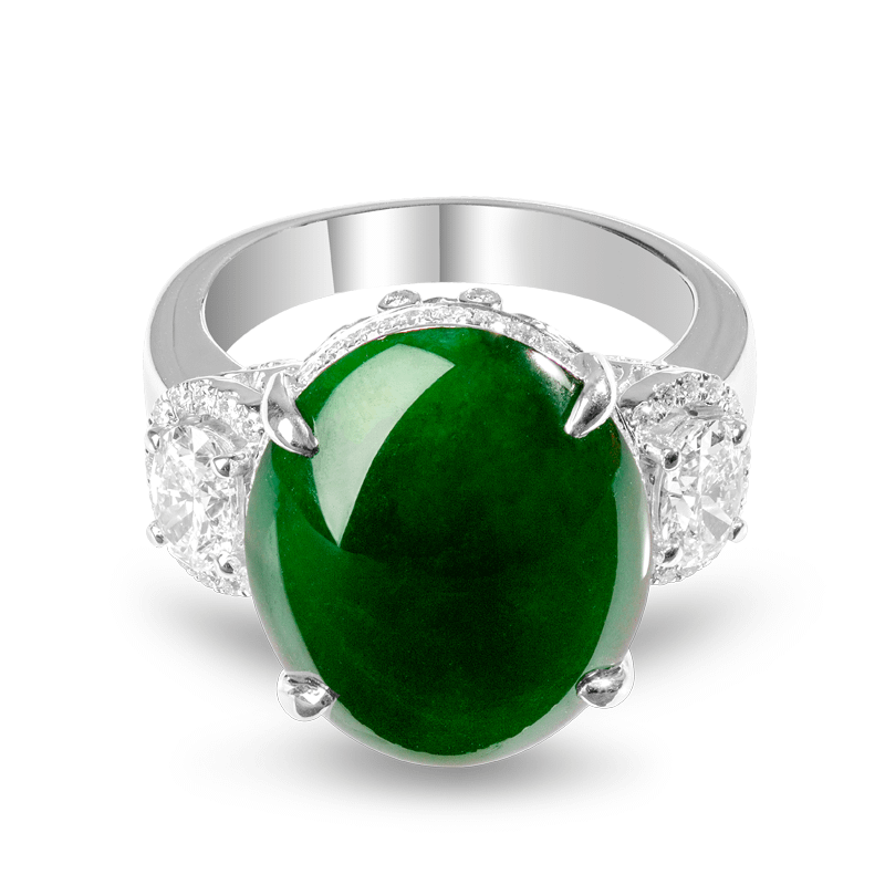 “Biān fú” (蝙蝠) or “Pin Fuk” (蝙蝠) in Cantonese, with having the same pronunciation to Prosperity as Fú (福), they are often a symbols of good luck, happiness and propitious providence in the Chinese culture. “Propitious Providence” Jadeite Diamond Ring, with the